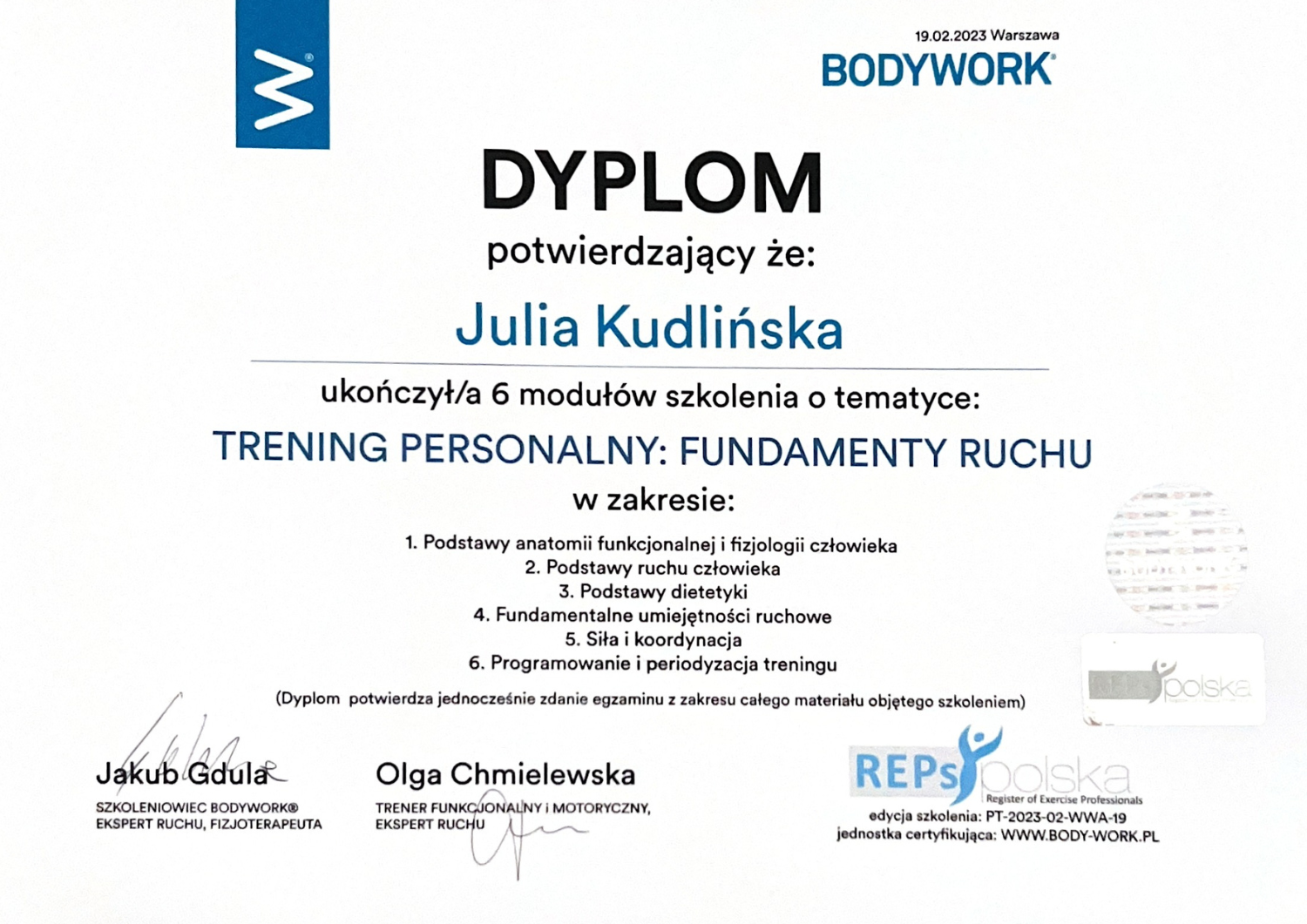 Sport towarzyszy mi od najmłodszych lat i wiem, jak bardzo potrafi zmienić codzienne życie. Ukończyłam Akademię Wychowania Fizycznego w Krakowie oraz liczne kursy i szkolenia, które pozwoliły mi połączyć wiedzę z praktyką i pasją do pracy z kobietami. Dzięki temu rozumiem, jak ważne są indywidualne potrzeby i jak różne mogą być drogi do osiągnięcia celu.